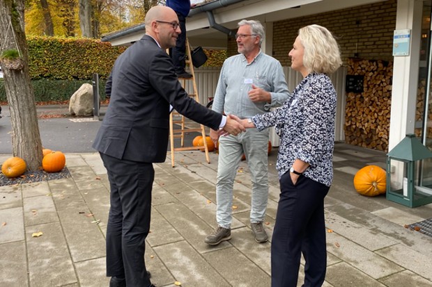 Fødevareminister Rasmus Prehn hilser på Britta Riis, Direktør, Dyrenes Beskyttelse og Per Kølster, Formand , Økologisk Landsforening. Foto: Marendine Ladegaard, Økologisk Landsforening.